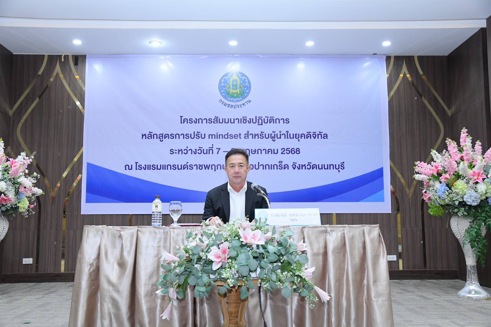 วันที่ 7 พฤษภาคม 2568 นายธนพล สงวนตระกูล ผู้อำนวยการศูนย์เทคโนโลยีสารสนเทศและการสื่อสาร และนายราชพล หิรัญรักษ์ ผู้เชี่ยวชาญด้านเทคโนโลยีและระบบสารสนเทศ เข้าร่วมโครงการสัมมนาเชิงปฏิบัติการ หลักสูตรการปรับ Mindset สำหรับผู้นำในยุคดิจิทัล โดยมี นายวรพจน์ เพชรนรชาติ รองอธิบดีฝ่ายบริหาร เป็นประธานเปิดโครงการ ณ ห้องราชาวดี ชั้น 4 โรงแรมแกรนด์ราชพฤกษ์ อำเภอปากเกร็ด จังหวัดนนทบุรี การอบรมในครั้งนี้ จัดโดยสำนักบริหารทรัพยากรบุคคล ระหว่างวันที่ 7 - 8 พฤษภาคม 2568 เพื่อแลกเปลี่ยนเรียนรู้เกี่ยวกับการสร้าง Growth Mindset และการใช้ Mindset เพื่อการเปลี่ยนแปลงองค์กร